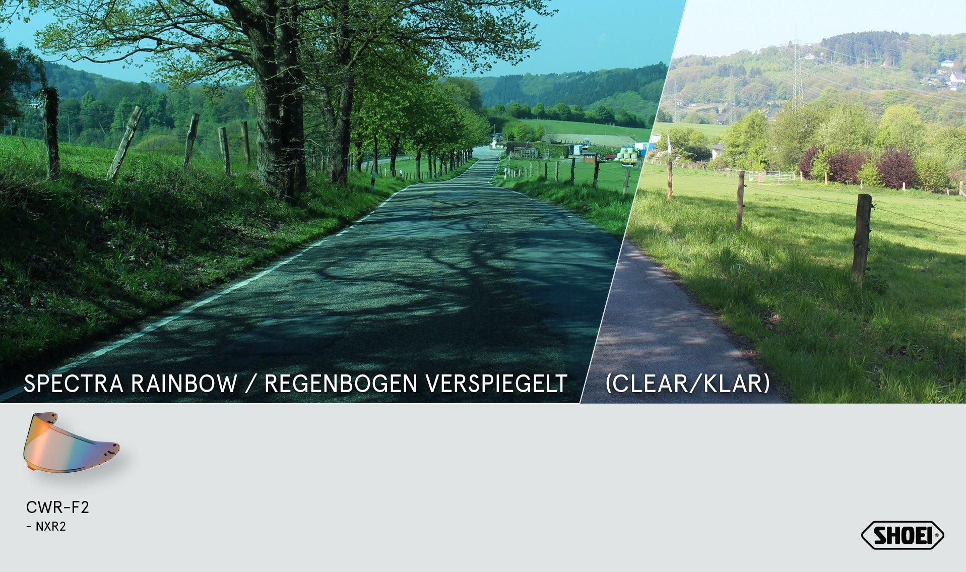 La visière de Shoei CWR-F2PN à Rainbow reflète votre X-SPR Pro un véritable capteur oculaire: la surface arc-en-ciel irisée assure des réflexes de lumière spectaculaire et réduit en même temps l'éblouissement au soleil. Parfait pour les vélos d'exposition, les jours de piste et les voyages ensoleillés - mais ne peut être utilisé qu'en lumière du jour.