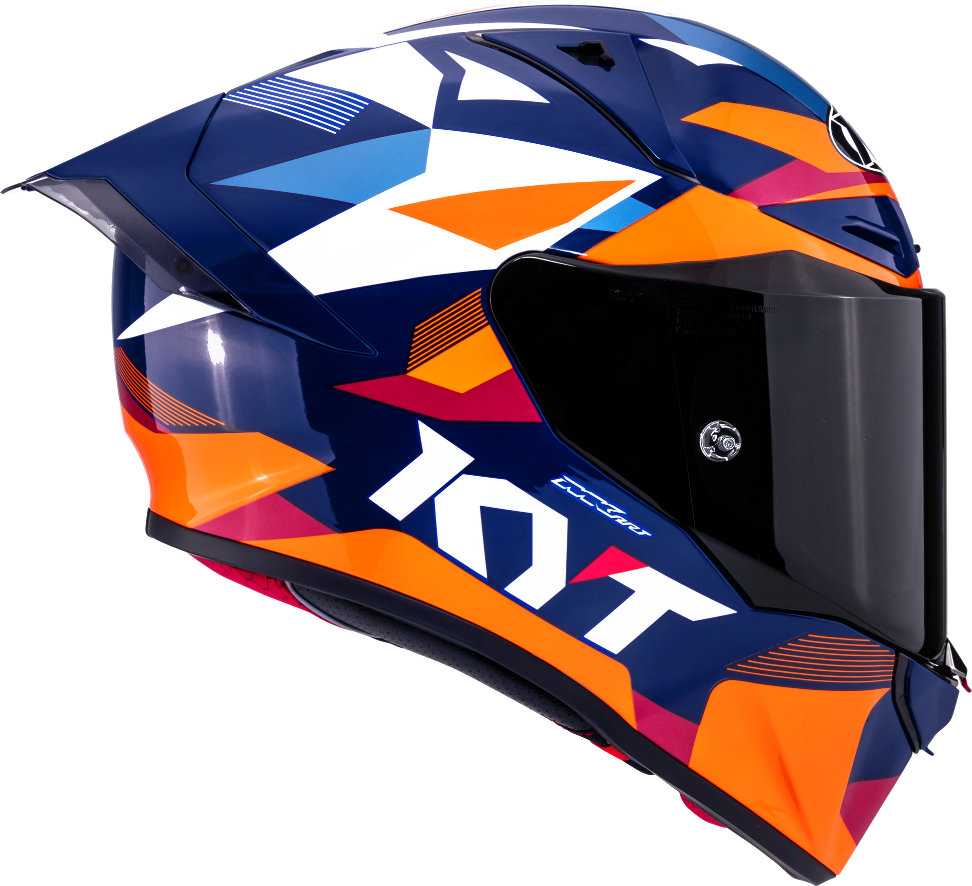De KYT R1R Carbon Diamond Blauw/Oranje combineert compromisloze raceprestaties met een opvallend en elegant diamantontwerp. De combinatie van glanzende carbonstructuur en dynamische blauw-oranje kleuraccenten maakt deze helm tot een echt premium statement – modern, agressief en absoluut sportief.