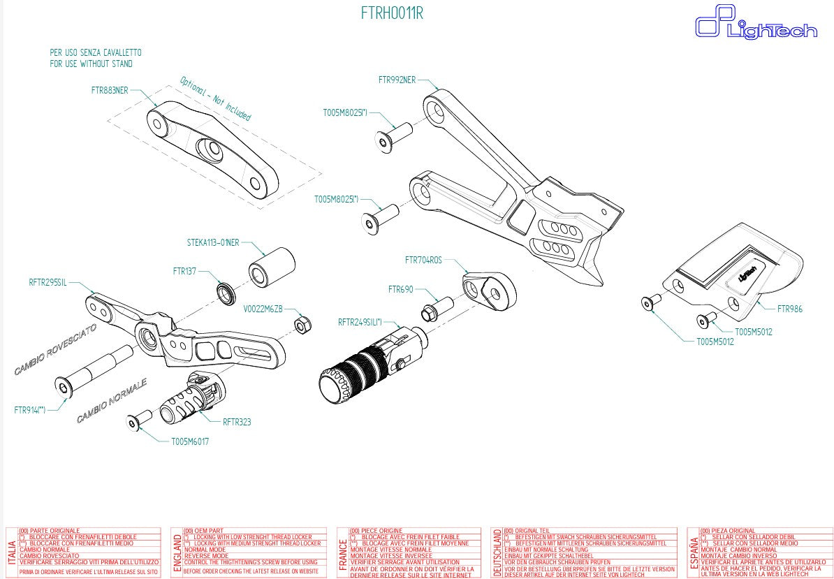 Die LighTech R-Fußrastenanlage FTRHO011R für die Honda CBR 1000 RR-R SC82 (Modelljahre 2020–2026) bietet höchste Qualität, Ergonomie und Flexibilität für den Einsatz auf der Straße und der Rennstrecke.