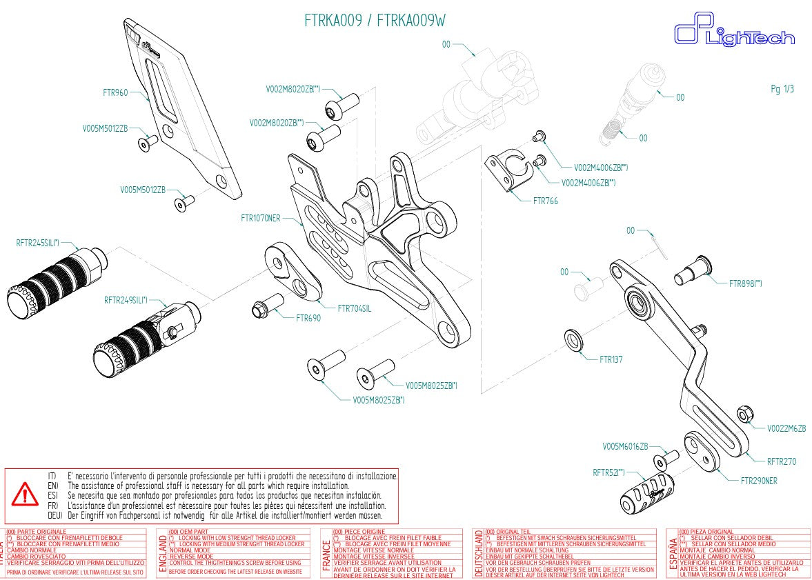 Fußrastenanlage LighTech Umkehrschaltung Kawasaki ZX-6R/636/RR (05-26) FTRKA009/W