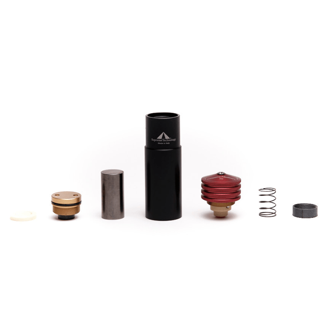Das Oversuspension-System besteht aus einem präzisionsgefertigten Aluminium-Zylinder mit Resonator, Feder und Gewicht. Es neutralisiert Vibrationen und Schwingungen, die entstehen, wenn das Federbein an seine Grenzen kommt. So verbessert sich das Ansprechverhalten der Federung, die Traktion steigt – und das Fahrgefühl wird deutlich ruhiger und präziser.