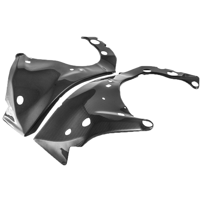Gefertigt aus hochwertigem 200 Plain oder 245 Twill Carbon, sind die Abdeckungen ultraleicht, extrem widerstandsfähig und perfekt an die Konturen des Motorrads angepasst. Dank Plug & Play Montage ersetzt dieses Set das OEM-Teil 1:1, ohne Anpassungen. Zudem sind die Rahmenprotektoren mit ABE für den legalen Straßeneinsatz zertifiziert.