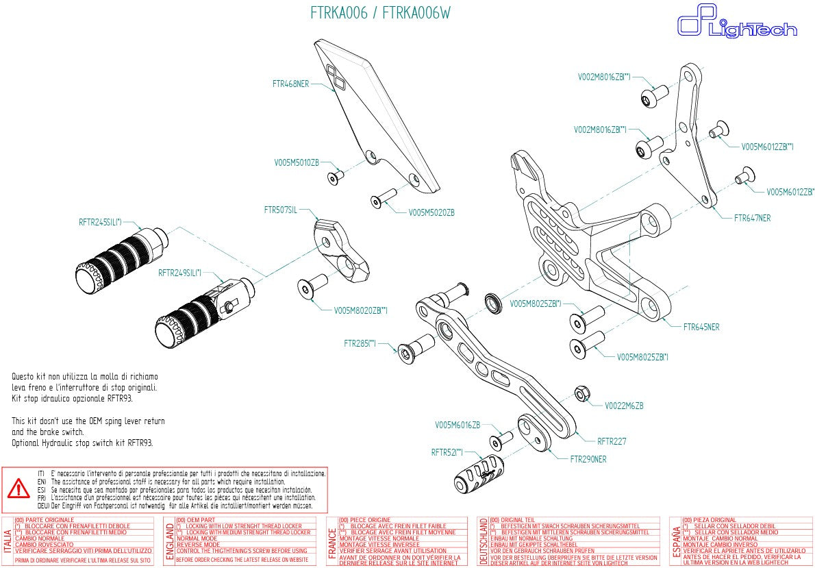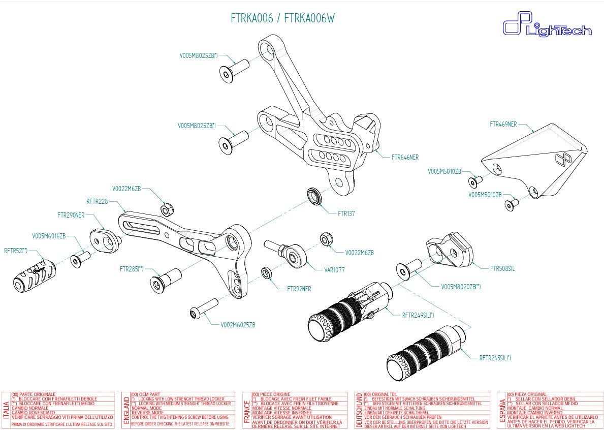 O sistema de pedaleiras LighTech FTRKA006W para a Kawasaki ZX-10R / ZX-10RR (anos de fabricação 2016–2020) foi desenvolvido para motociclistas de estrada e corrida com ambições esportivas. Fabricado em alumínio Ergal 7075-T6 de alta resistência, impressiona pela sua rigidez excepcional, baixo peso e excelente ergonomia.