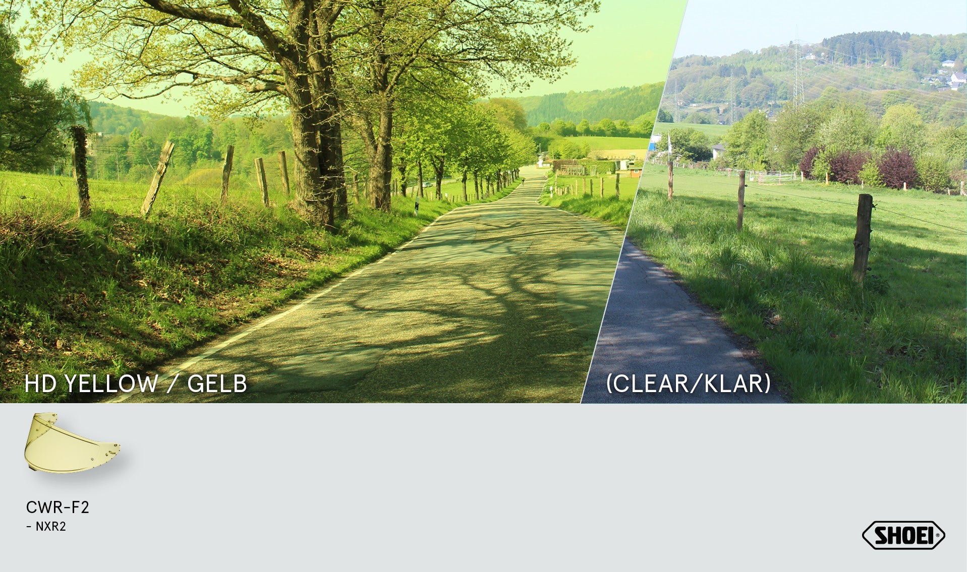 O visor SHOEI HD Amarelo CWR-F2PN melhora visivelmente a sua visibilidade em condições de luz difíceis – ideal para pilotos de esportes conscientes da segurança com foco em desempenho.